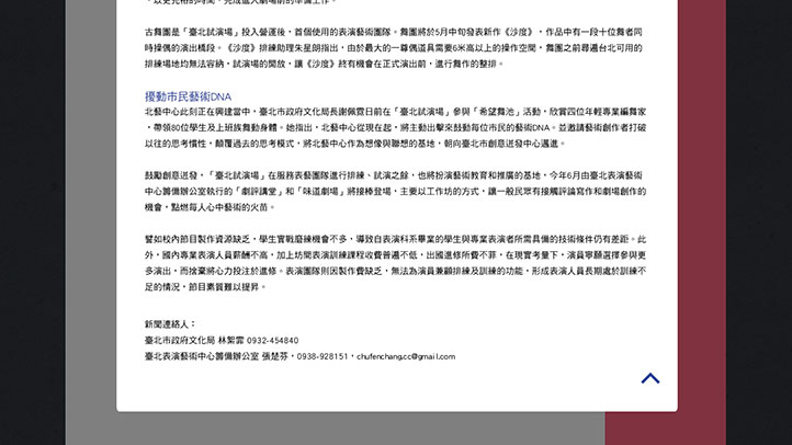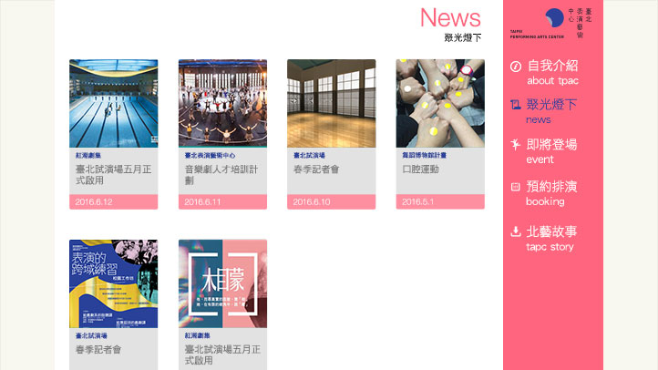 TPAC Taipei Performing Arts Center official website, is flying. In 2016, Creative Interactive created a mini-website project, which played a role of linking the past and the future before the official website was launched.
