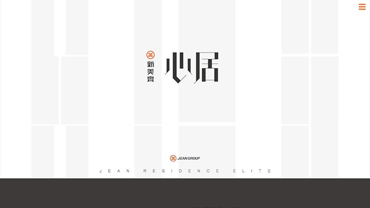 這是一個以房屋銷售的產品形象網頁,設計團隊以深淺不同的灰色,搭配標準色的亮橘色,營造出高級的氛圍感。