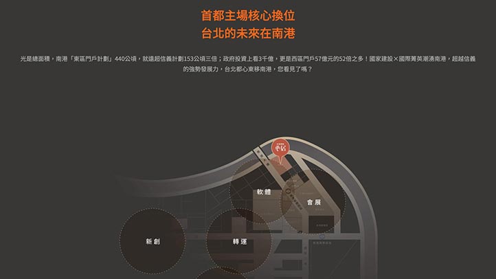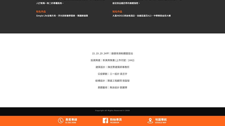 大氣、簡潔俐落、國際感,是整個頁面的設計主軸,同時搭配RWD響應式設計,讓來到網站的每個人,都能快速聚焦到產品上,引導使用者聯繫或參觀銷售中心。